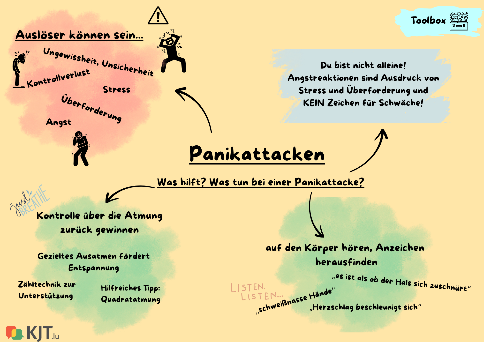 Wichtig ist zu wissen, dass nicht alle Übungen zu jedem passen. Deshalb laden wir dich gerne ein diese Übungen erstmal auszuprobieren, so dass du deine eigene „Notfallbox“ oder „Werkzeugkoffer“ mit deinen eigenen Methoden füllst, die für dich am besten passen. Vielleicht findest oder besitzt du sogar Methoden, die schon immer für dich in stressigen Situation hilfreich waren, wie z.B. einen bestimmten Song, ein bestimmtes Hörbuch, Yoga, ein Waldspaziergang, eine Entspannungsübung, Jogging… Alles was hilft, sich von Sorgen zu entlasten, ist erlaubt. Es geht darum gezielt das zu tun, was dir guttut!